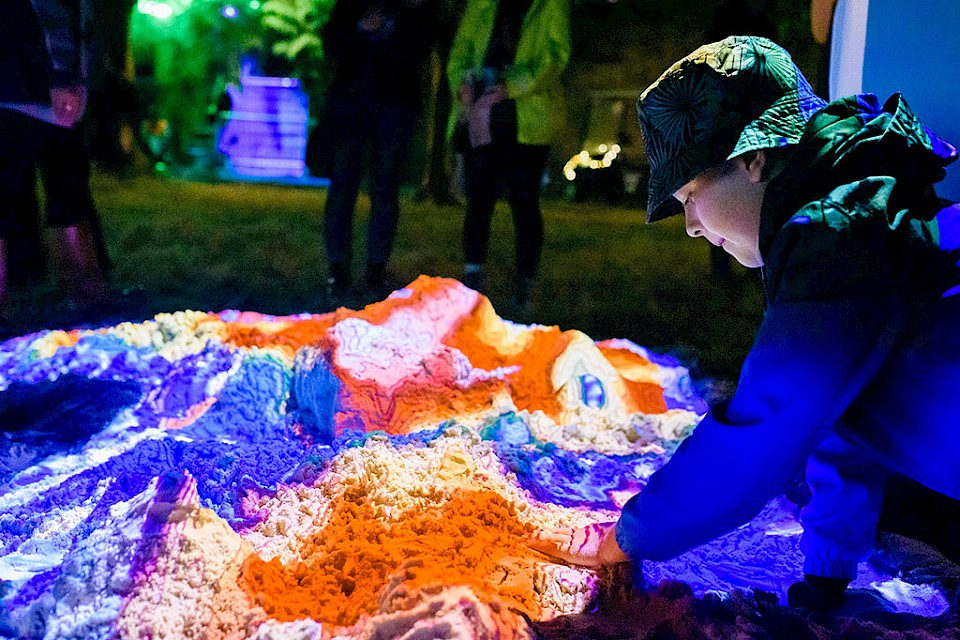 ‘Festivals are the perfect settings for video/light-based installations. Showing work outdoors is challenging but the results are really special and worth the stress. The support of the team was invaluable to making the work and increasing my confidence in my practice and myself!’ Gweni Llwyd